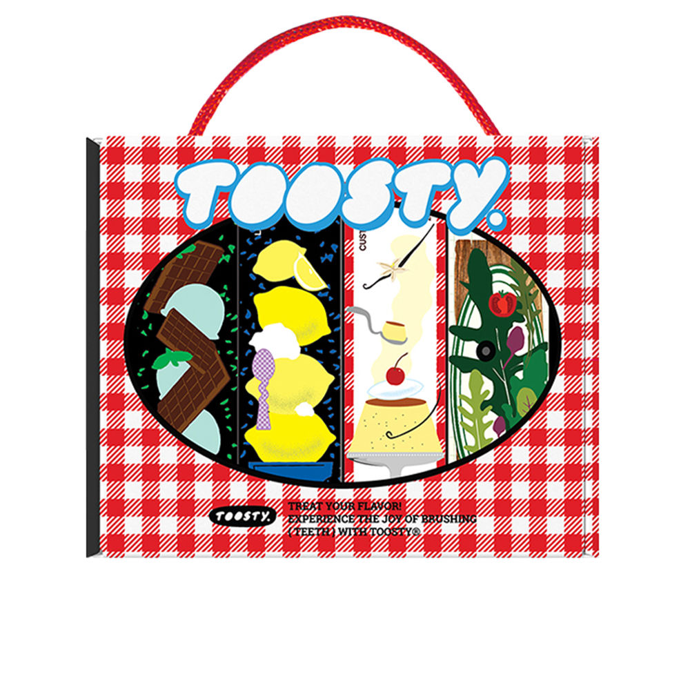 Pasta de dente sabor pudim 25 gr + Pasta de dente sabor sorvete de limão 25 gr + Pasta de dente sabor chocolate com menta 25 gr + Pasta de dente sabor rúcula 25 gr